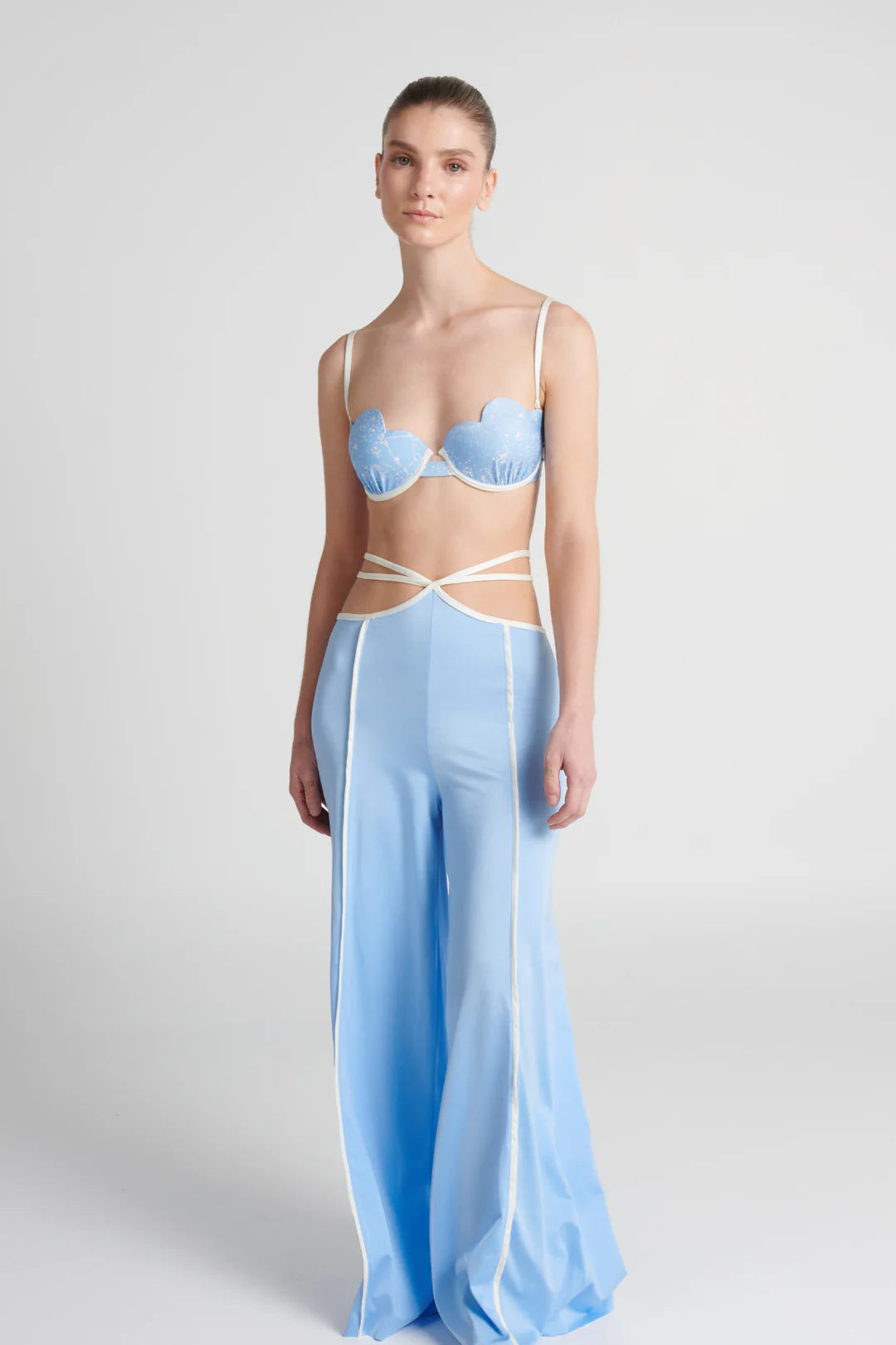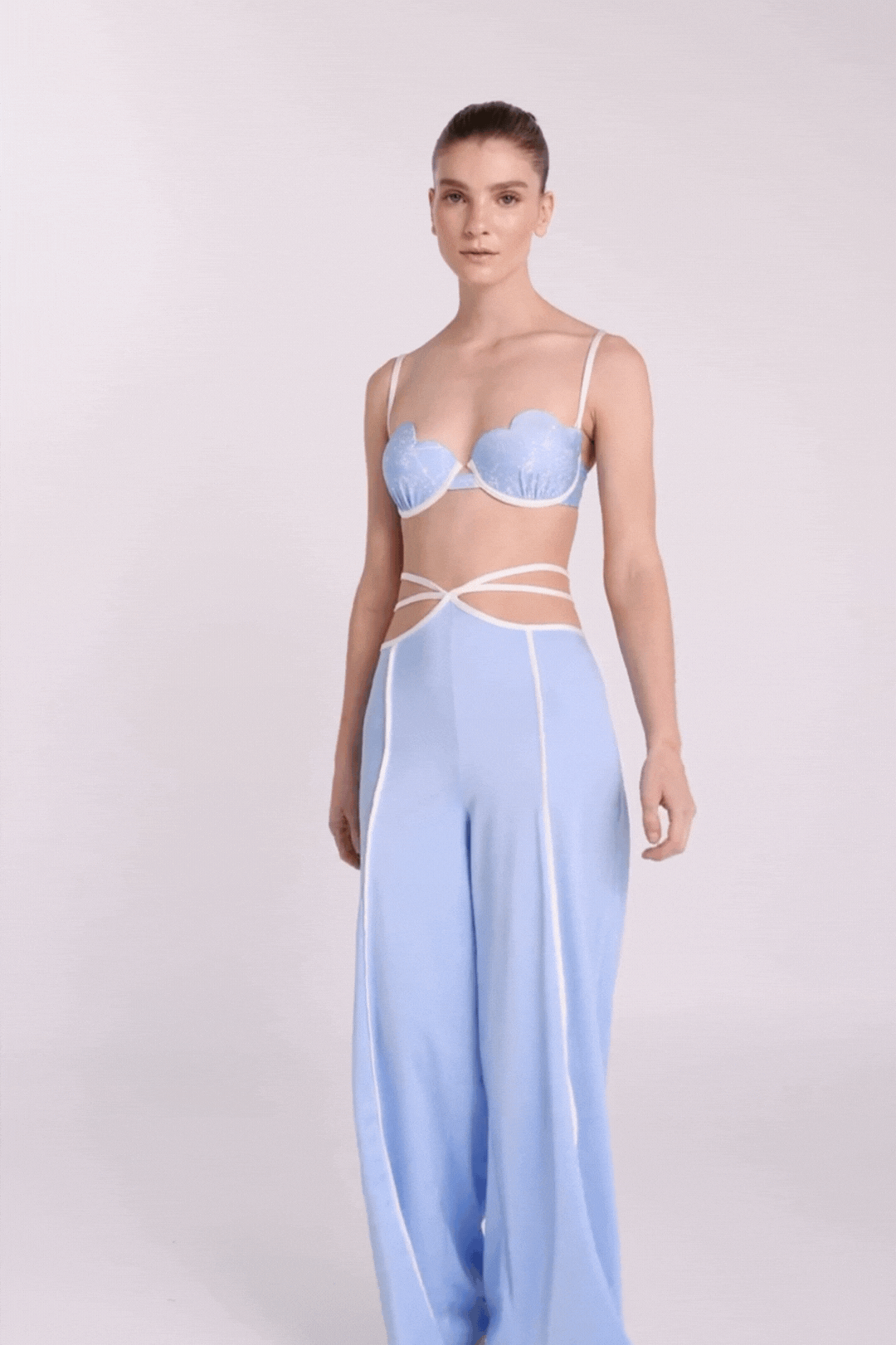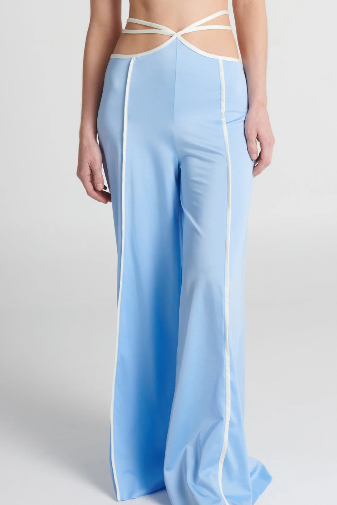 Straight-cut pants with princess-style waistband seams, structuring the silhouette